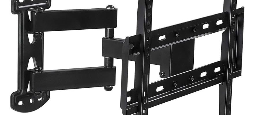 There are various types of wall brackets for mounting TVs, including fixed brackets, tilting brackets, full-motion brackets, and swivel brackets. Fixed brackets hold the TV close to the wall, while tilting brackets allow you to adjust the viewing angle. Full-motion brackets offer the most flexibility as they allow you to tilt, swivel, and extend the TV away from the wall.